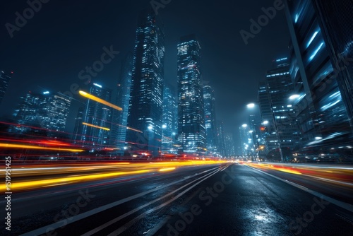 Nighttime Cityscape Photography Showing Street With Fast Vehicle