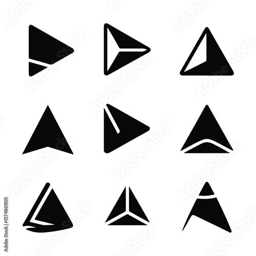 Nine black geometric triangle icons on white background