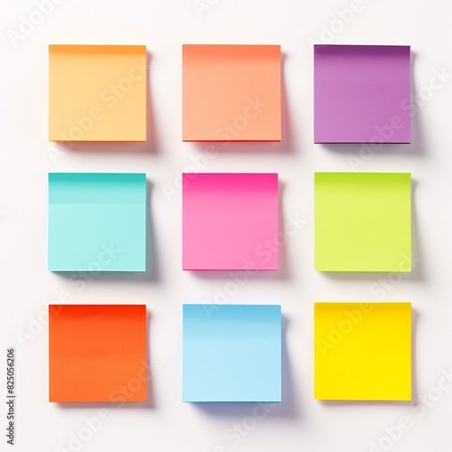 Nine colorful sticky notes arranged in a grid on a white background, showcasing vibrant organization and planning tools