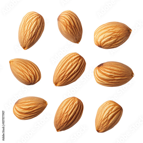 Nine whole almonds arranged in a grid. Perfect for food and health related projects.