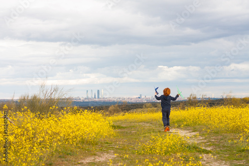 niño jugando en el campo