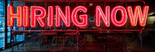 “NIRING NOW” neon sign - bar - restaurant - employment - new jobs - jobs report