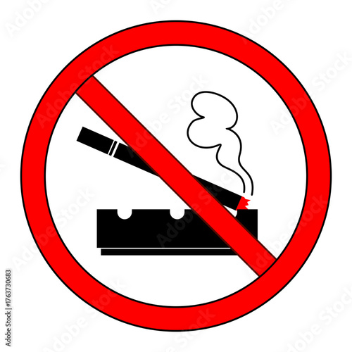 No smoking prohibition sign icon, featuring a lit cigarette with smoke crossed out by a thick red circle and diagonal line