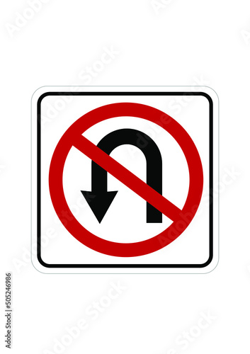 No U turn road sign on white background. Vector illustration.