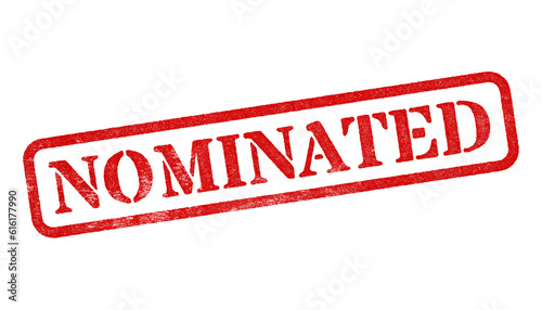 Nominated red rubber stamp isolated on transparent background with distressed texture effect
