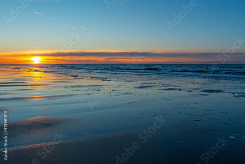 North Sea beach sunset, Oostende (Ostend), Belgium.