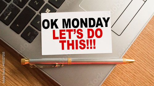 Notepad with inscriptions OK MONDAY LET'S DO THIS on a white background. business concept.