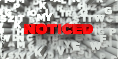 NOTICED - Red text on typography background - 3D rendered royalty free stock image. This image can be used for an online website banner ad or a print postcard.