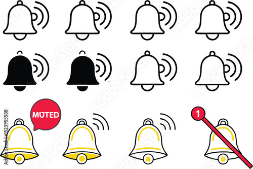 Notification Bell Icon Set with Different States and Configurations