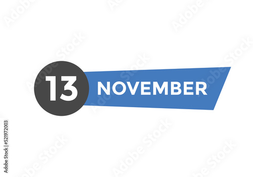 november 13 calendar reminder. 13th november daily calendar icon template. Calendar 13th november icon Design template. Vector illustration