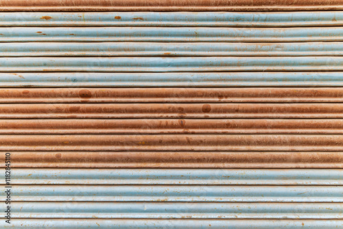 Nowhatta, Srinagar, Jammu and Kashmir, India. Rusted metal shop door.