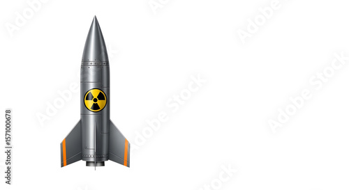 Nuclear Rocket with Yellow and Black Symbol - Spacecraft Design Pointed-Tip Rocket with Wings - Hazardous Mission Concept isolated on transparent background