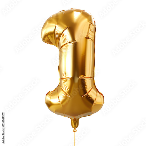 Number "1" foil golden balloon isolated on white background