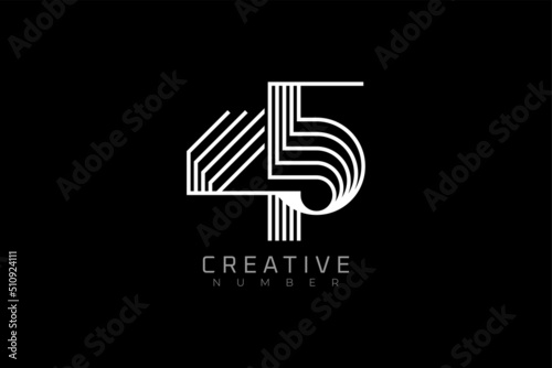 Number 45 Logo, modern and creative number 45 multi line style, usable for brand, anniversary and business logos, flat design logo template, vector illustration