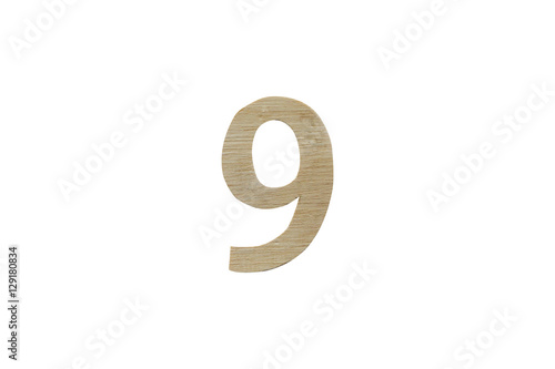number 9 alphabet made from wood isolated on white background