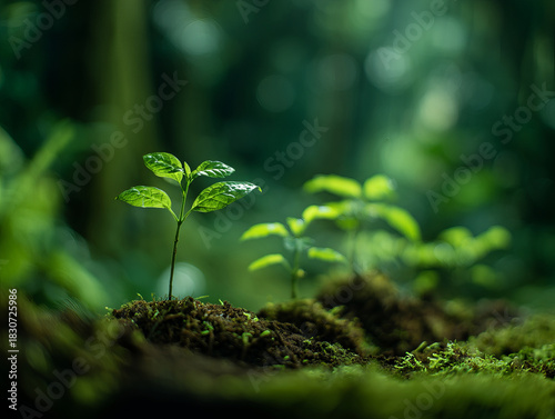Nurturing seedlings grow in lush greenery, symbolizing hope and regeneration in nature