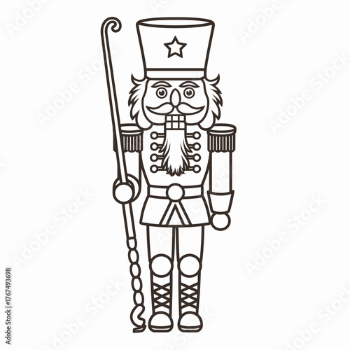 Nutcracker outline with curved nutcracker tool – Great for festive icon sets, vintage Christmas graphics, or design templates.