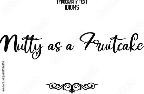 Nutty as a Fruitcake. Text Phrase Vector Quote idiom