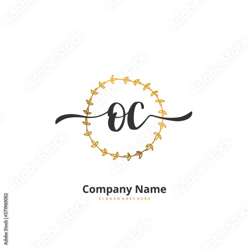 O C OC Initial handwriting and signature logo design with circle. Beautiful design handwritten logo for fashion, team, wedding, luxury logo.