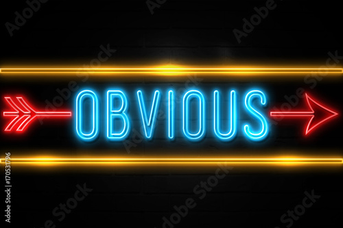 Obvious - fluorescent Neon Sign on brickwall Front view