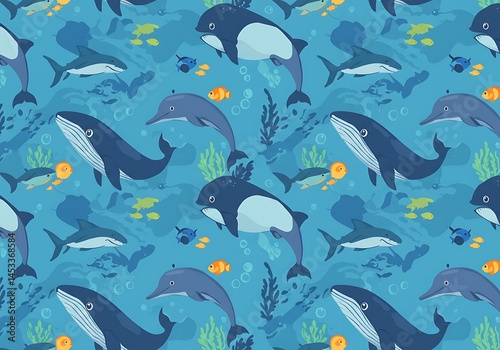 Ocean Life: Vibrant Blue Whale Pattern AI Generated