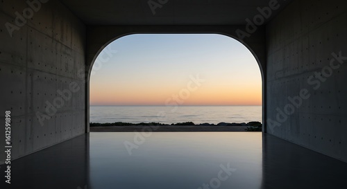 Ocean View From Concrete Archway at Sunset Serene Coastal Scenery