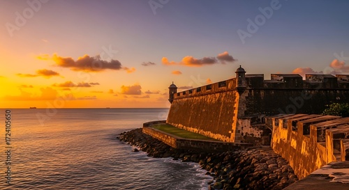 Oceanfront fortress at sunset offering a mesmerizing view for travel