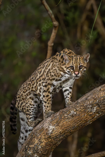 Ocelot climbing a tree in the Pantanal