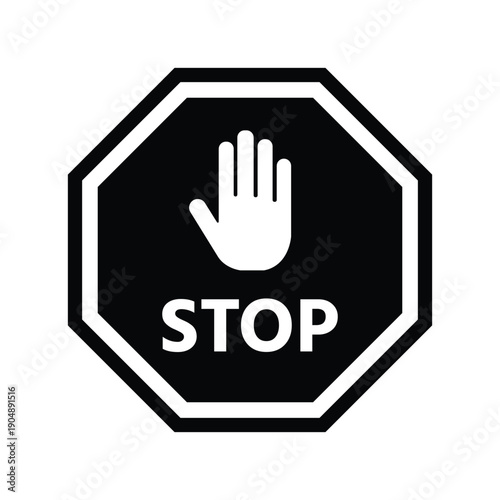 Octagonal Stop Sign Icon with Hand Gesture Symbol for Safety and Warning Concept Vector Illustration