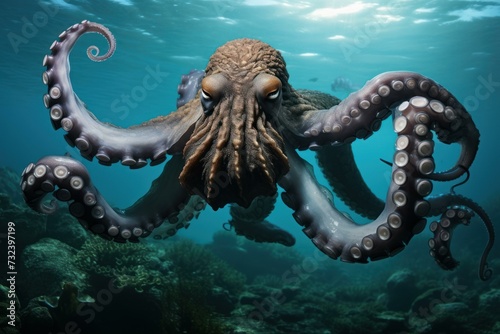 Octopus underwater daylight. Nature water sea. Generate Ai