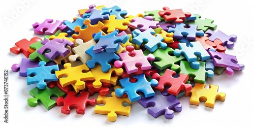 of colorful puzzle pieces scattered on white background, puzzle, pieces, jigsaw, game, connection, challenge, solution