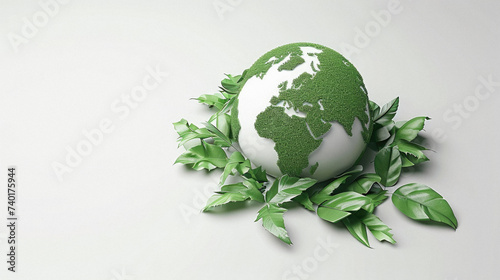 Of earth surrounded by green leaves on white background .