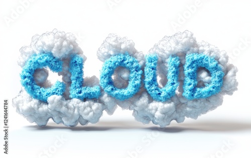 of the word CLOUD made from soft fluffy clouds with a light blue tint, isolated on white