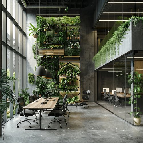 office greenery plants workspace modern interior design meeting room lush vertical garden open space green walls nature