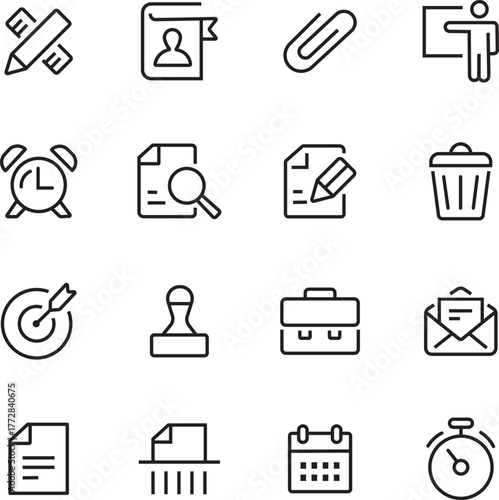 Office line icon set and Business outline icon set