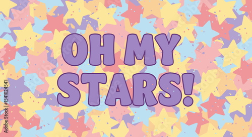 OH MY STARS! Playful exclamation with colorful star pattern background. Fun and vibrant design for celebrations or kids.