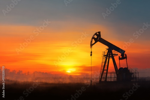 Oil Pump Jack Operating at Sunset in Open Field