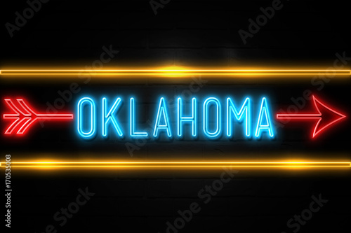 Oklahoma - fluorescent Neon Sign on brickwall Front view
