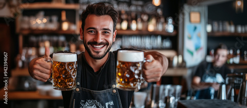 Oktoberfest. Close up a Friendly People holding a Big mug Beer with copy space for text. Bavarian Oktoberfest Background.