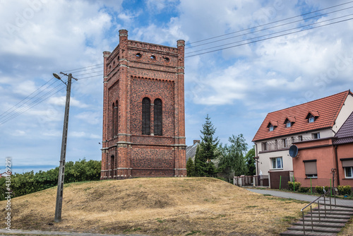 Old bell tower next to Mother of God Roman Catholic Church in Lubasz, small town in Wielkopolska region of Poland