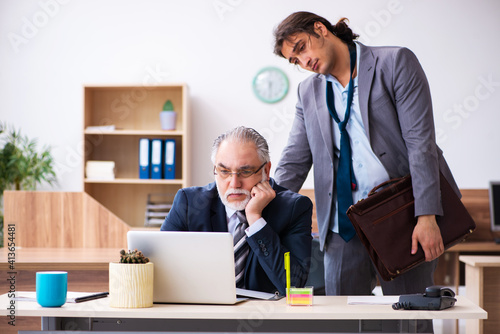 Old boss and his male secretary employee in time management conc