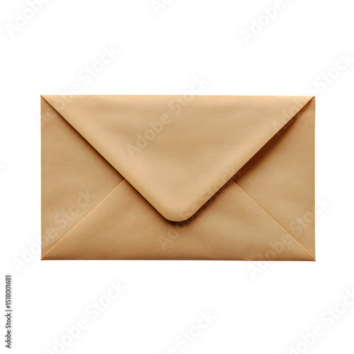 Old brown paper envelope ready for mailing or business contact, isolated on transparent background.