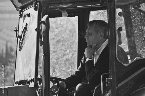 Old farmer on his tractor