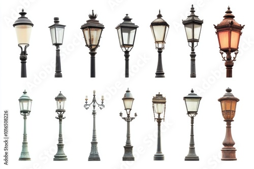 Old fashioned street lamps on a clean white background.