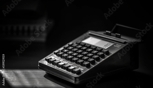 Old fashioned typewriter on desk in modern office generated by AI