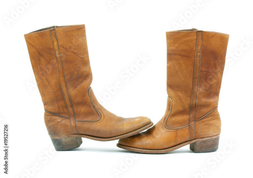 Old leather boots toe to toe