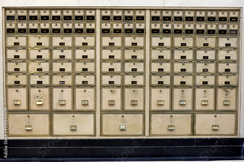 Old Mailboxes - brass vintage old fashion mailboxs. Secure form of delivery of personal private mail.
