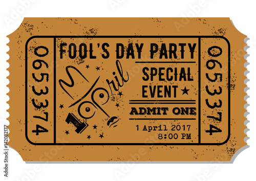 Old paper ticket, admit one for Fool's Day Party