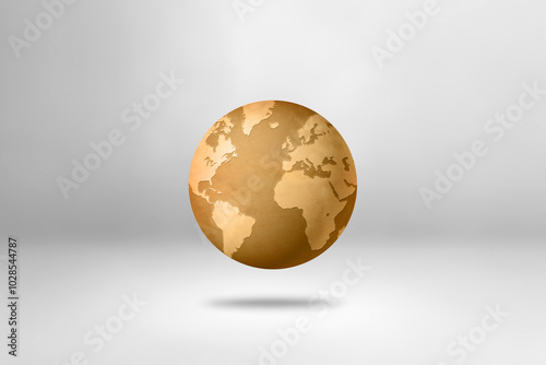 Old paper world globe isolated on white background