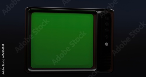 old retro television with a green screen instead of a screen on a blue background.3d illustration of a television From the 90s